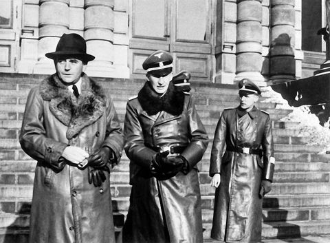 Albert Speer, dvorní architekt Adolfa Hitlera, společně s Reinhardem Heydrichem před Rudolfinem v prosinci 1941. Fotografie ČTK.