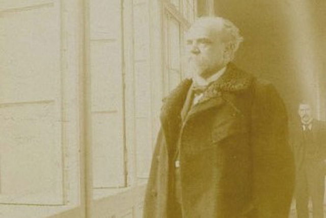 © Národní muzeum - České muzeum hudby, inv. č. S 226/1071, Antonín Dvořák na pavlači domu v Žitné ulici, v pozadí Josef Suk, ca 1902, autor neznámý