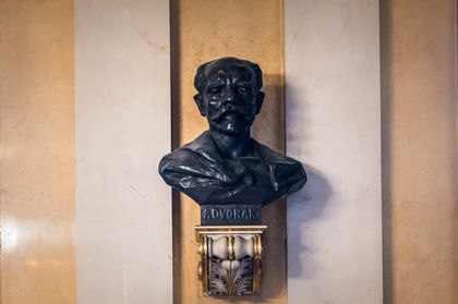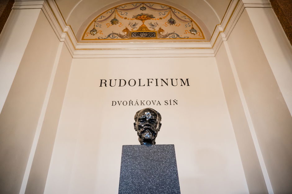 V přízemí Rudolfina u hlavního vchodu se na tmavém kamenném podstavci sklání hlava Antonína Dvořáka se zavřenýma očima. Autor tohoto mistrovského portrétu, sochař Josef Mařatka byl sice o generaci mladší než Antonín Dvořák, oba však měli mnoho společného: umělecké nadání, pracovitost, pokoru, ale také životní osudy.