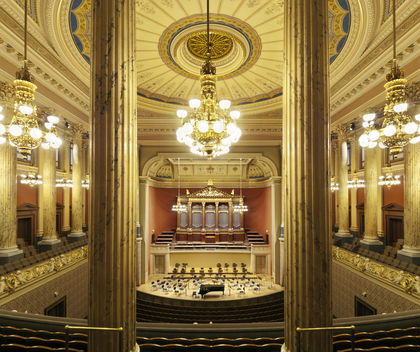 The Dvořák Hall is Prague's most important concert hall which has hosted star conductors and soloists from all over the world since 1896. The hall's appearance will enchant every visitor from the ranks of performers and listeners alike. High ceilings with an impressive chandelier, massive columns, neo-Renaissance decorations, a stage dominated by a majestic organ, excellent acoustics and, primarily, a unique atmosphere that no other place offers. All of this adds up to an unforgettable experience of every concert or festive event.