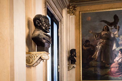 In the foyers of all floors of the historic National Theater building, the audience can count around eighty busts of important cultural figures. Rudolfinum visitors can count only one, the portrait of Antonín Dvořák by Josef Mařatka. A stand-alone piece of art is completely unostentatious. Its power lies in the quiet concentration the intensity of which suggests the greatness of the composer in the portrait and the sculptor himself. What makes this bust so different from others?