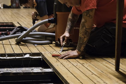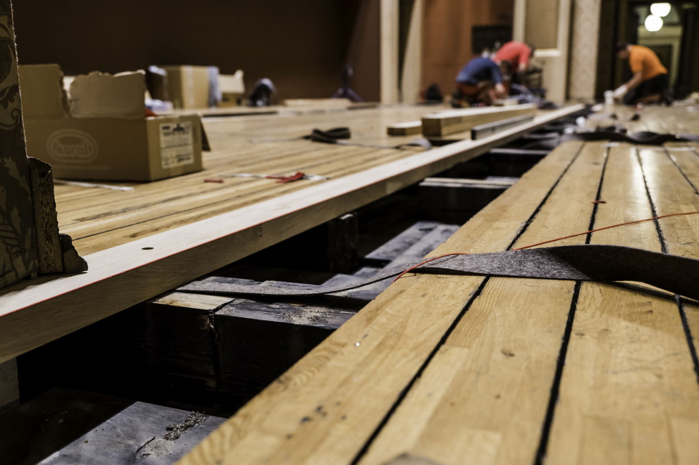 Therefore, the Teak team met the original stage designers. And, among other things, they found out that they would need to get special interlocking material, a felt placed between the planks and the underlying beams. Its strips would be fixed so that there would be no wood-on-wood contact. Otherwise, the floor would creak. "The kind of a felt we needed is no longer available today though. So the felt factory produced a special density of interleaving felt between the boards for us," Radek Stöhr says happily.