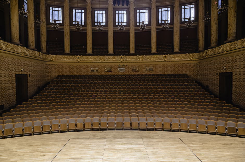 The Dvořák Hall stage, which is familiar to today's audience, was built in 1990 as part of the Rudolfinum reconstruction led by architect Karel Prager. A number of minor repairs has been carried out on it, mainly sanding and varnishing the surface, eventually replacing damaged planks. These suffer not only from the normal handling and transportation of pianos and other heavy instruments, but also from stab wounds. The Czech Philharmonic musicians playing string instruments with tail spikes have a great advantage over most of their domestic as well as foreign colleagues: the Dvořák Hall is one of the few places where they can stab their instruments directly into the floor, without the use of a pad.