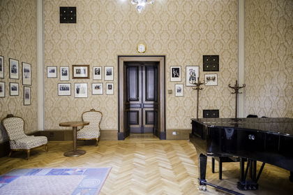 Elegantní sál s pestrým využitím pro komorní koncerty, workshopy, vzdělávací akce, přednášky a společenská setkání.
